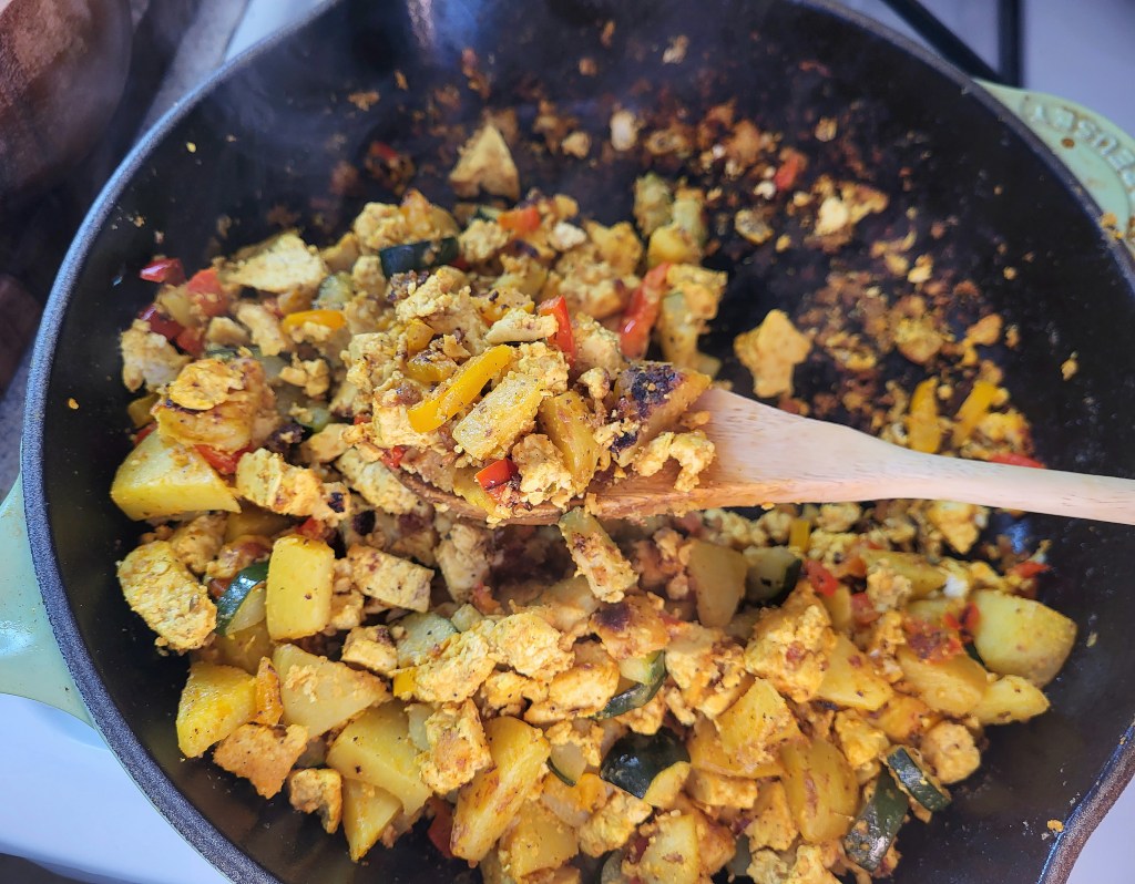 3. Add the tofu and potato to your skillet. Cook for 2-3 minutes.