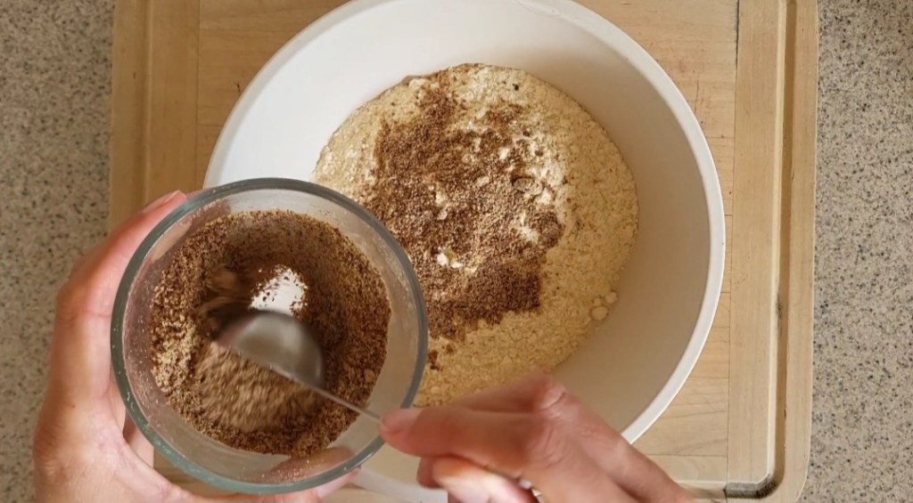 - Add the water and apple cider vinegar into the dry mixture. Mix well.