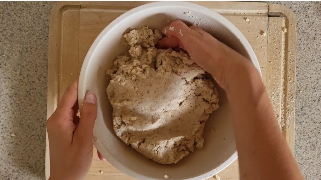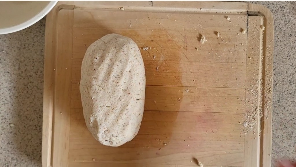 - Scoop dough out onto a cutting board or counter top. Kneed together as needed to form a loaf shape. Add more water if needed. The dough should not be sticky, yet moist.