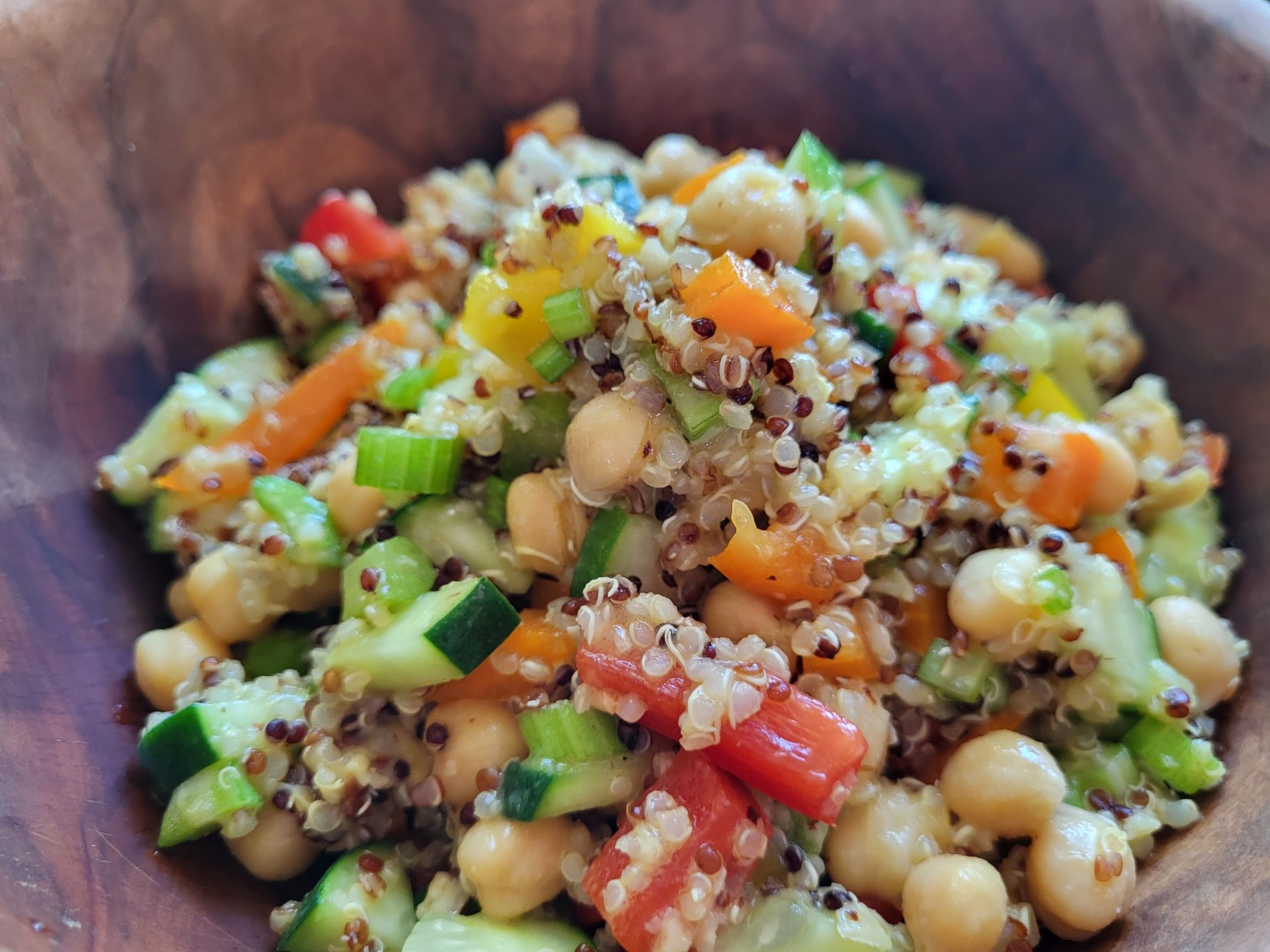 Here is a healthy, whole food plant based Quinoa Salad recipe. It is easy to make, quick, high in plant protein ( from the Quinoa & chickpeas ), and very filling. It is also gluten free if you are looking for gluten free recipes. Quinoa contains 8g of protein per cup and is a competeContinue reading “Quinoa Salad”